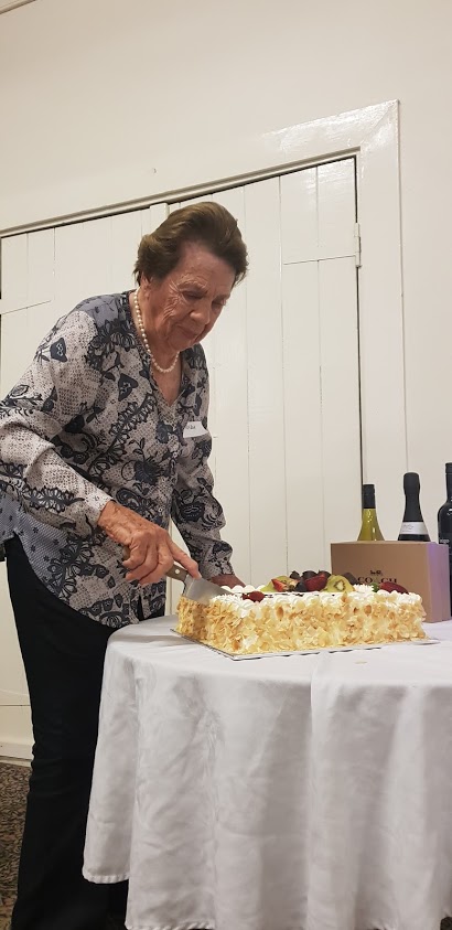 Nola Rowe cutting the 30th Anniversary Cake