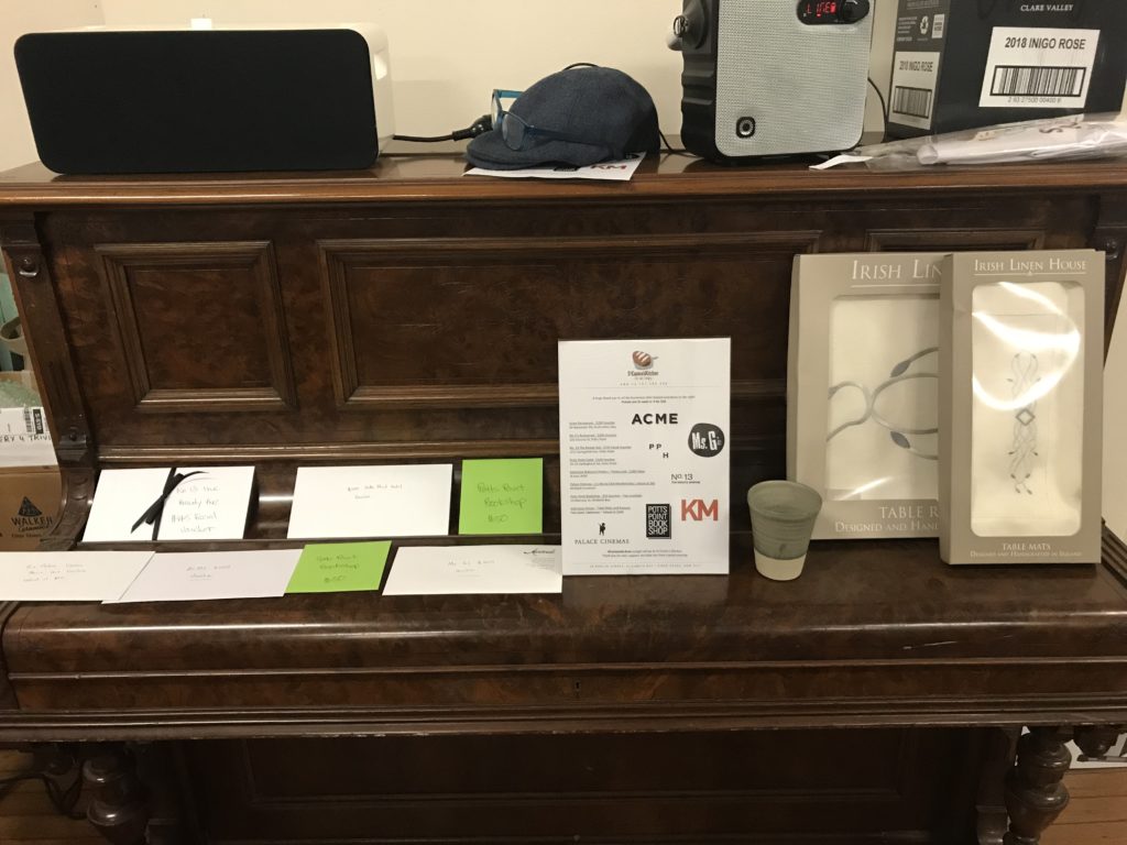 - Trivia Night prizes including local restaurant vouchers, book vouchers, hand turned pottery mugs and Irish Linen Tablewear.